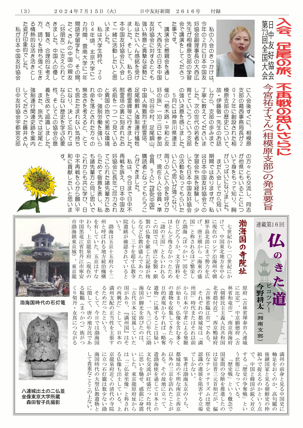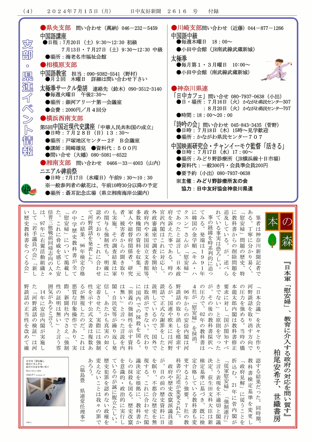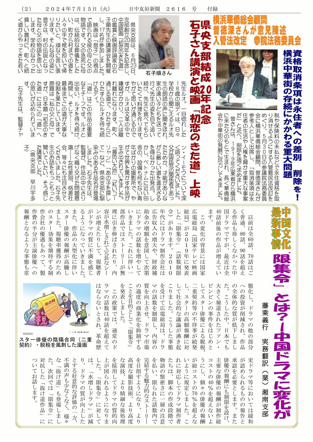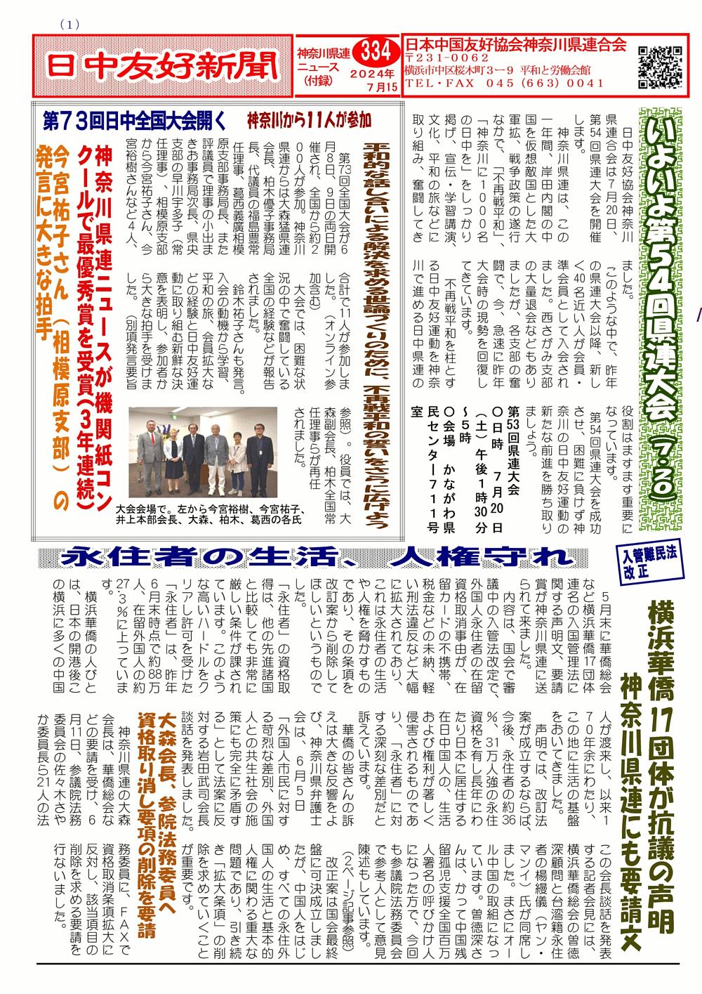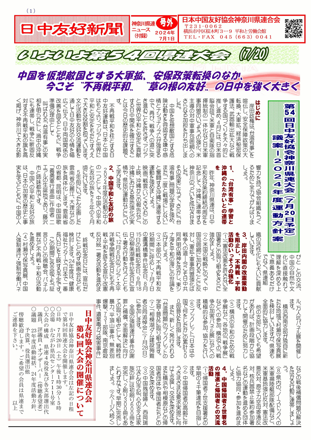 日中友好新聞 神奈川県連版 2024年7月1日 号外