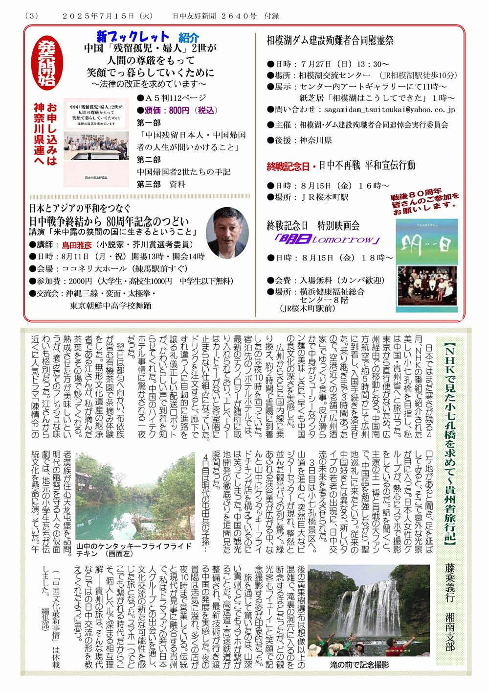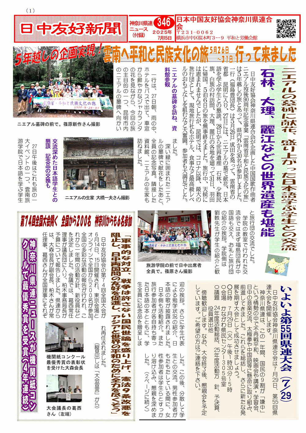 日中友好新聞 神奈川県連版 346号