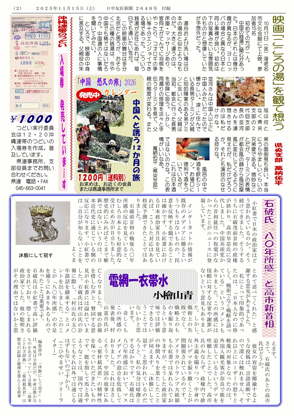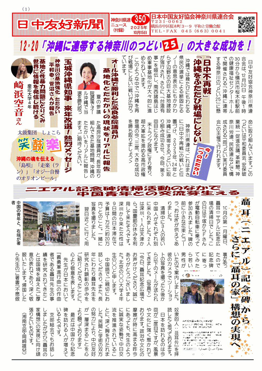 日中友好新聞 神奈川県連版 350号