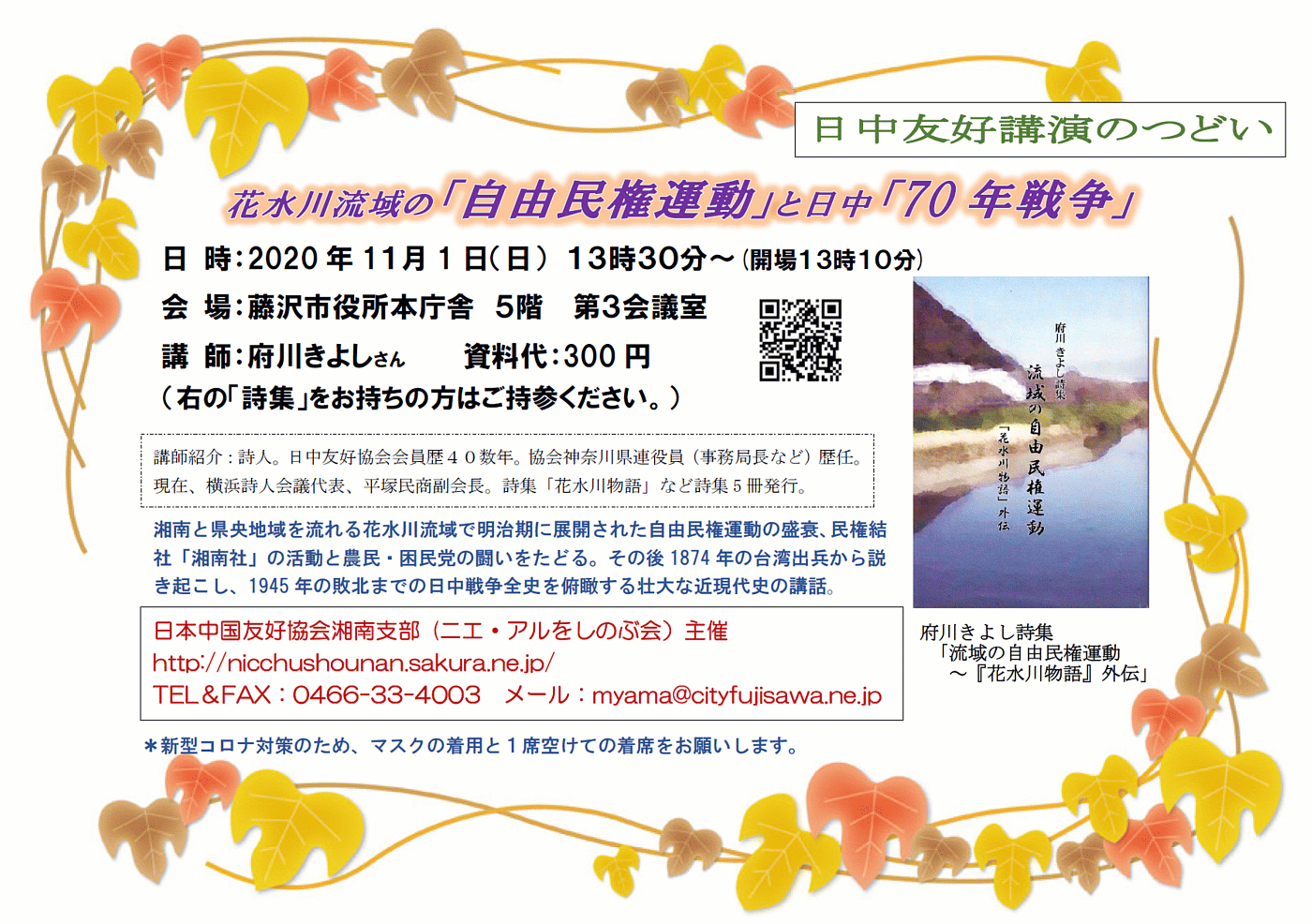 湘南支部 講演会 「花水川流域の「自由民権運動」と日中「70年戦争」」 |