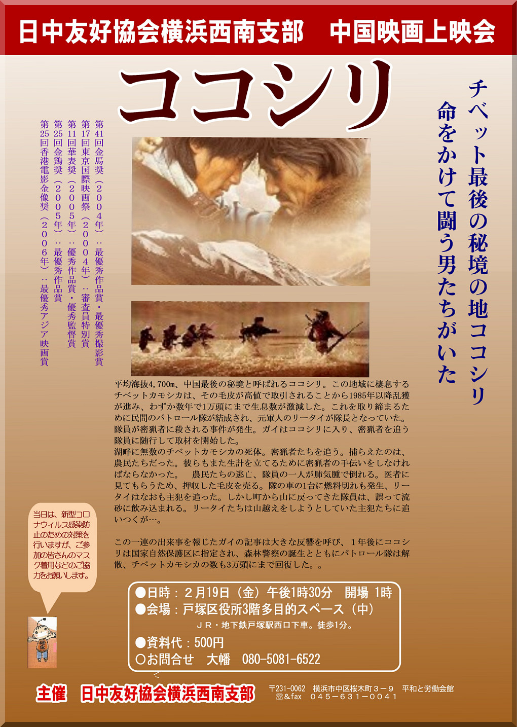 横浜西南支部、中国映画 「ジャスミンの花開く」 |