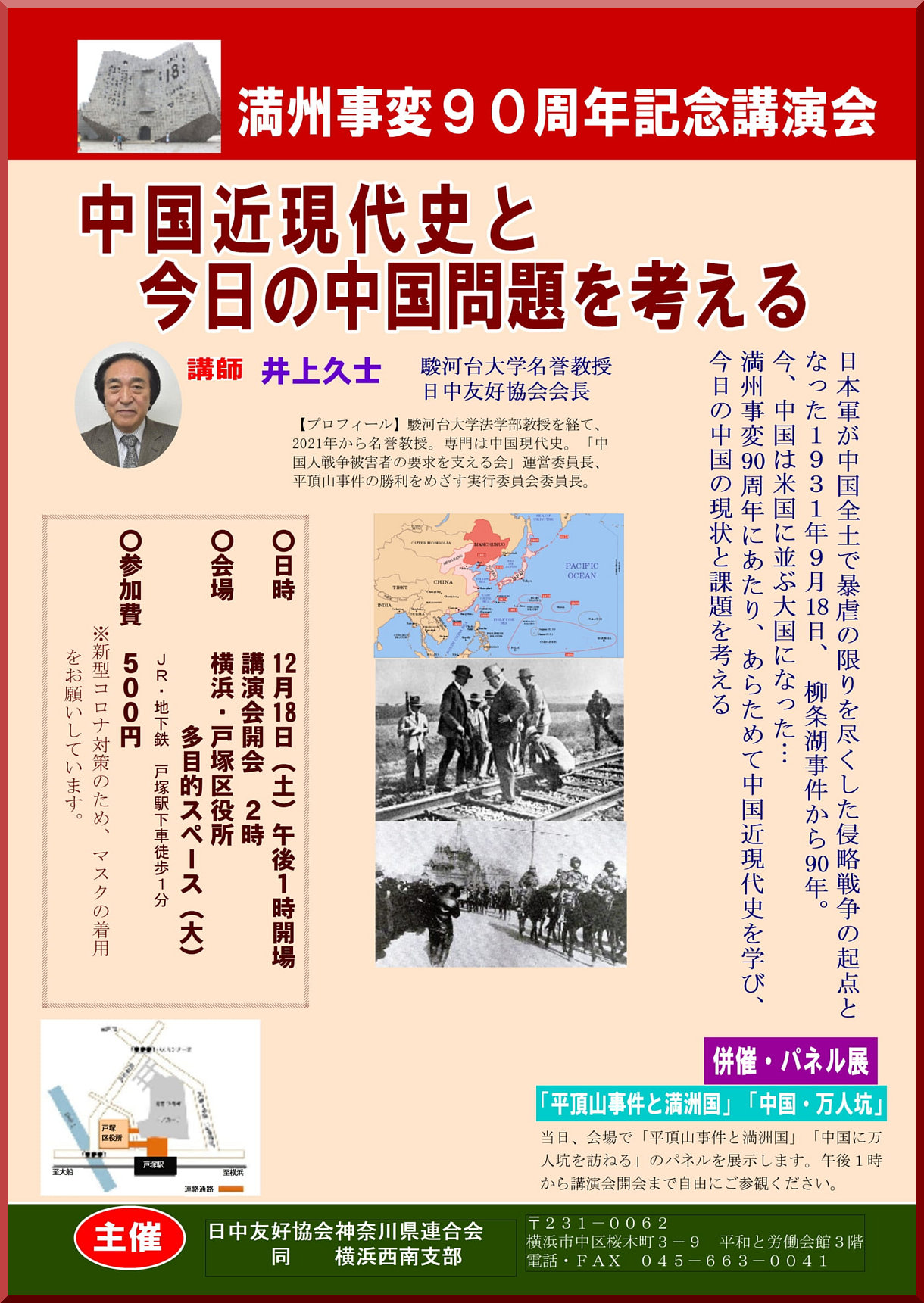 神奈川県連/横浜西南支部、満州事変90周年記念講演会 |