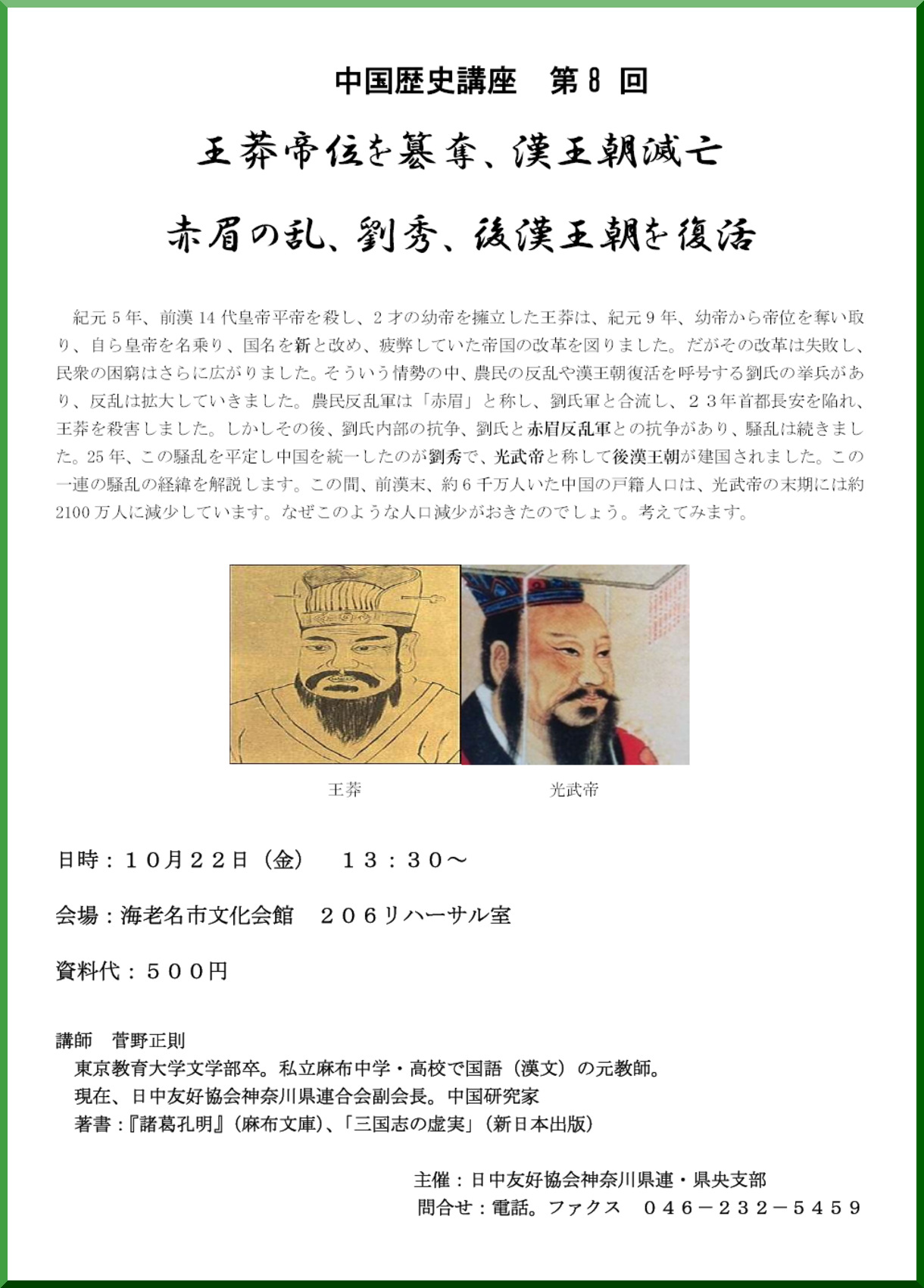 県央支部 中国歴史講座 「周の武王と太公望、伯夷、叔斉」 |
