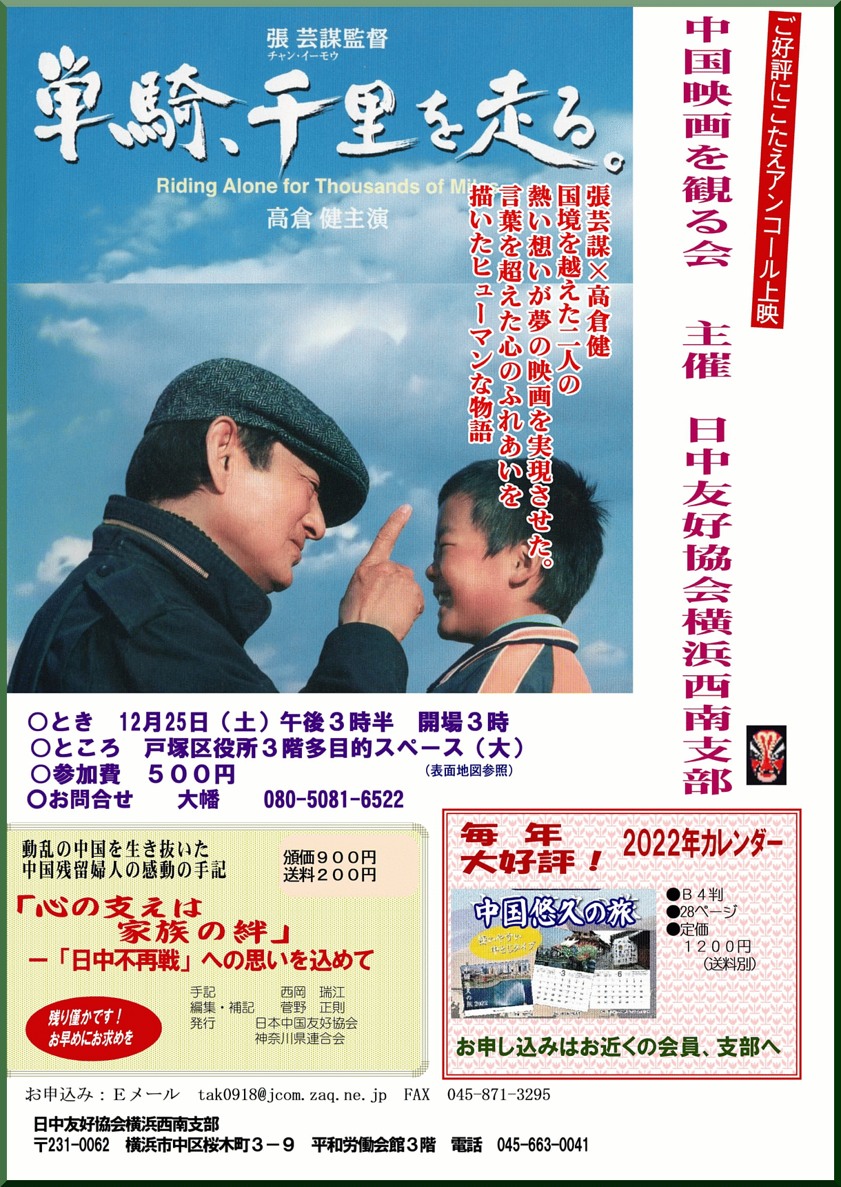 横浜西南支部、中国映画 「単騎千里を走る」 |