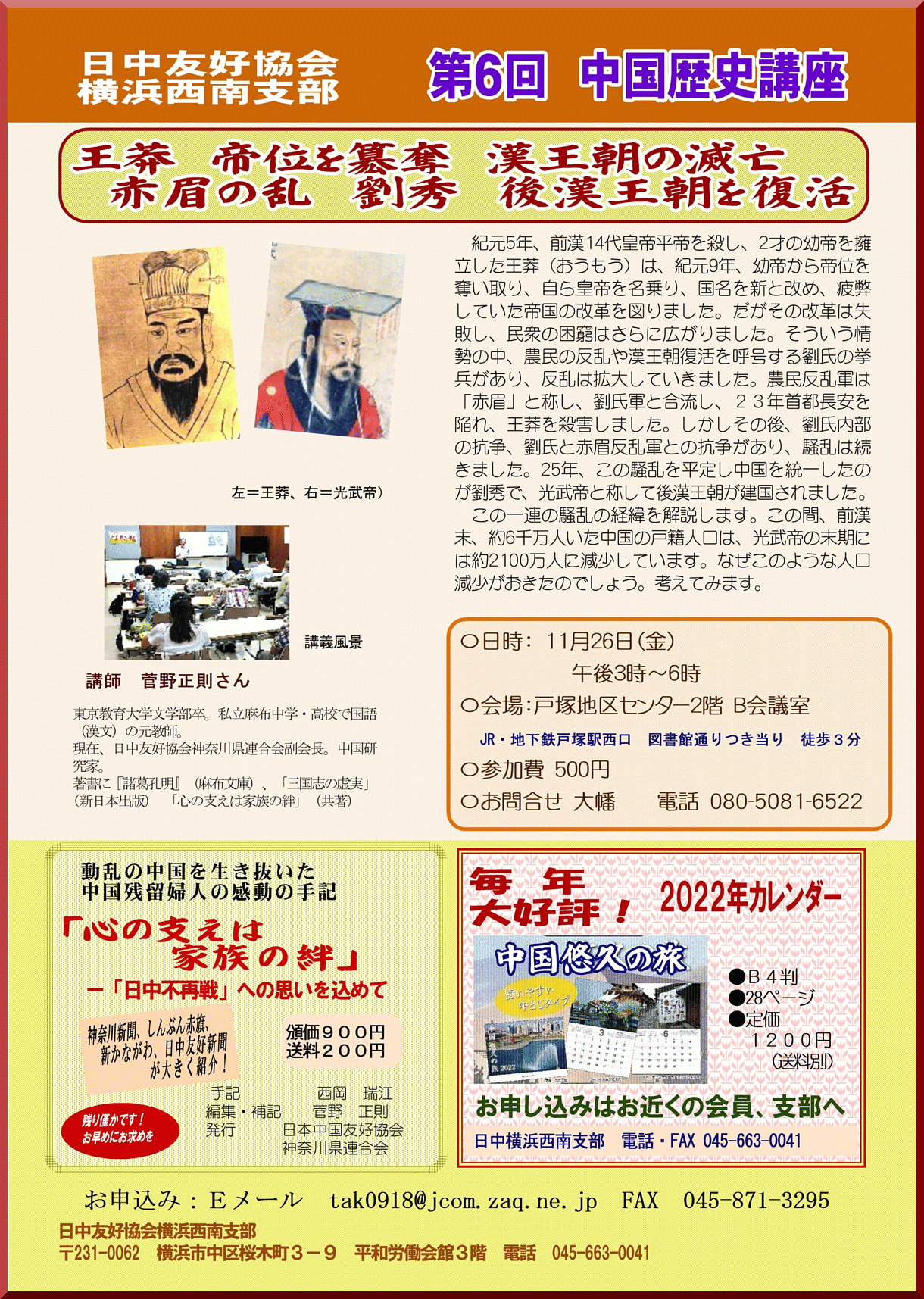 湘南支部 講演会 「西岡瑞江手記から見えてきた中国の現代史」 |